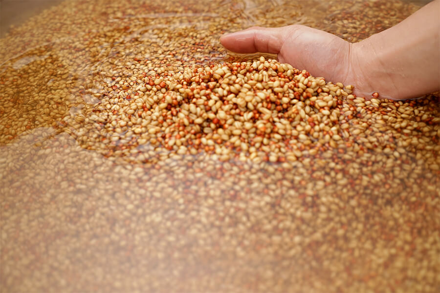 舍得酒業(yè)甄選優(yōu)質(zhì)原糧主產(chǎn)區(qū)的生態(tài)原糧,配合“六糧濃香工藝”,六糧配料,比傳統(tǒng)的五種糧食多一味,在濃香白酒釀造中具有特性:“高粱香、大米凈、糯米綿、玉米甜、小麥洌、大麥用于制曲”確保舍得酒香味成分的協(xié)調(diào),其六糧配料的奧秘是大米和糯米的含量高,形成了舍得基酒的“醇、甜、凈、爽”風(fēng)格特征。