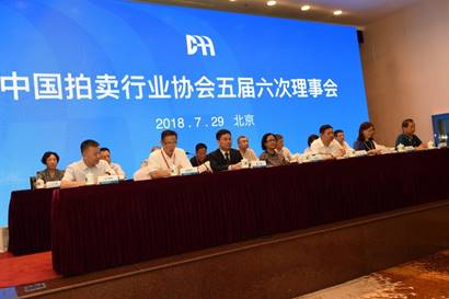 7月29日,中國(guó)拍賣行業(yè)協(xié)會(huì)五屆六次理事會(huì)在北京召開。中拍協(xié)名譽(yù)會(huì)長(zhǎng)張延華、會(huì)長(zhǎng)余平、常務(wù)副會(huì)長(zhǎng)黃小堅(jiān)、副會(huì)長(zhǎng)徐勉之、雷敏、苗華甫、王中明、李偉、張力、法勇生、陳志坤、祁志峰、韓濤,秘書長(zhǎng)李衛(wèi)東,原中拍協(xié)副會(huì)長(zhǎng)劉浚年、馬巧嘏等領(lǐng)導(dǎo)在主席臺(tái)就坐。中拍協(xié)副會(huì)長(zhǎng)徐勉之主持。