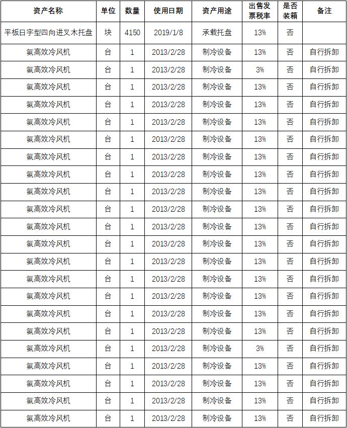 受委托,我公司將于2022年1月12日上午10時在金拍網平臺https://www.jinpaiwang.com.cn以網絡競價的方式公開處置 平板日字型四向進叉木托盤、氨高效冷風機等一批設備((具體見標的詳情表)。